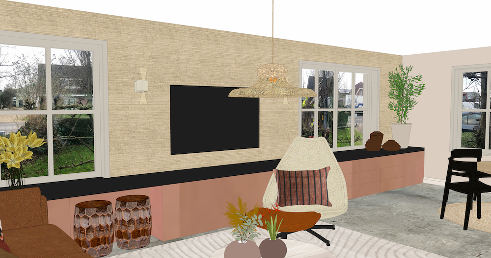 Deze leuke woning omgeven door groen is een echte eyecatcher geworden. Door de reisverhalen van de bewoner te verwerken in het ontwerp is het eigentijds en persoonlijk.