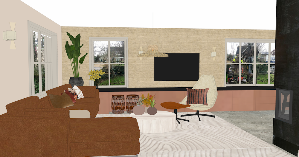 Een nieuw gezin in een nieuwbouw project. Door een mix van patronen, kleuren en materialen te gebruiken maar de basis neutraal te houden creëer je een fijne sfeer.